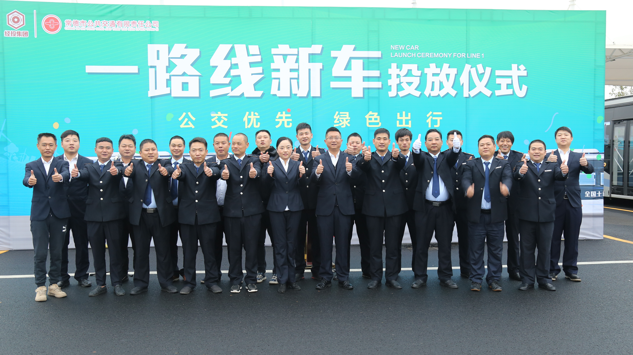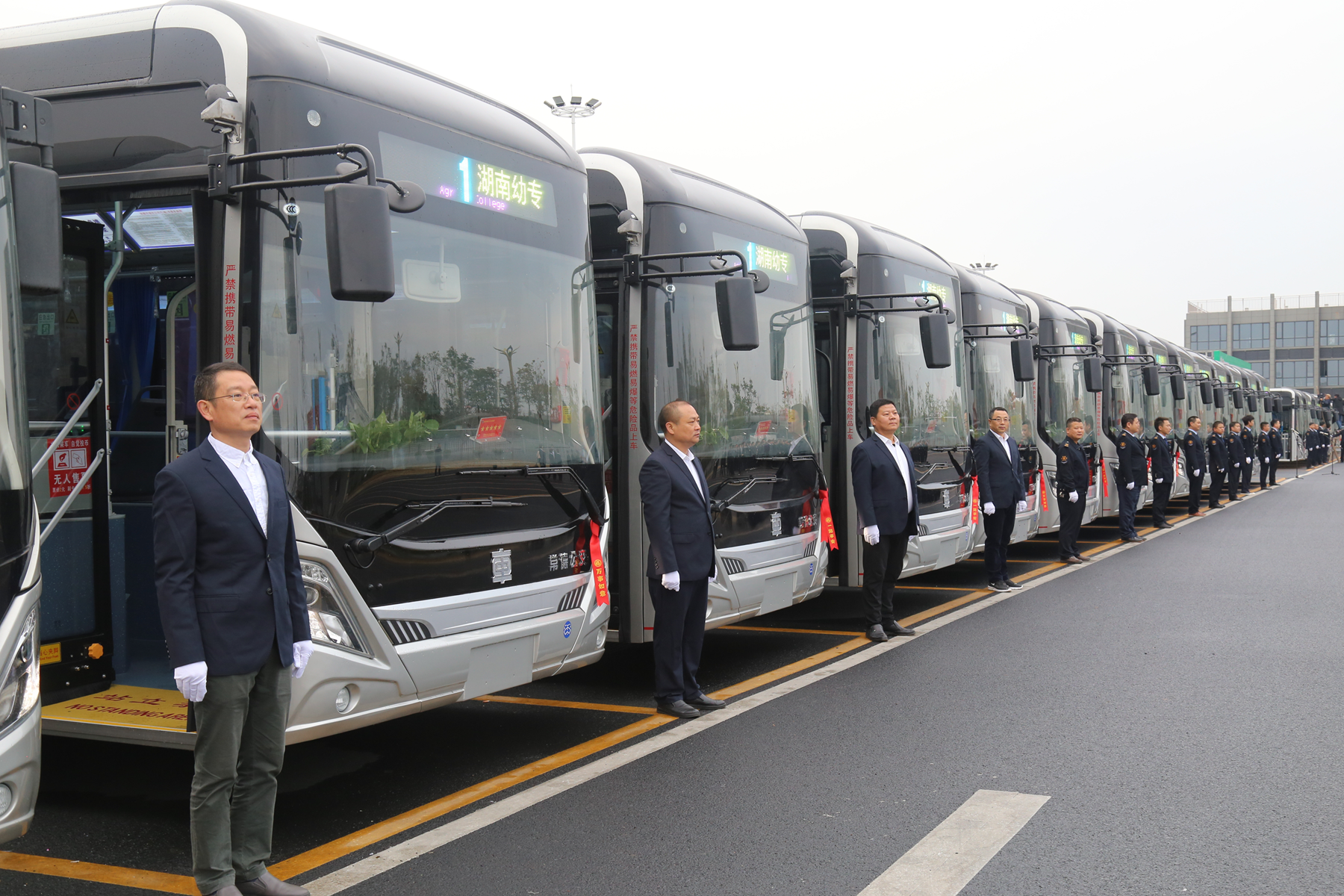 圖為1路線新車(chē)及駕駛員列隊(duì)待發(fā)