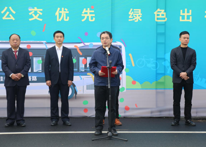 圖為市交通運(yùn)輸局副局長(zhǎng)王國(guó)軍宣布新車(chē)上線